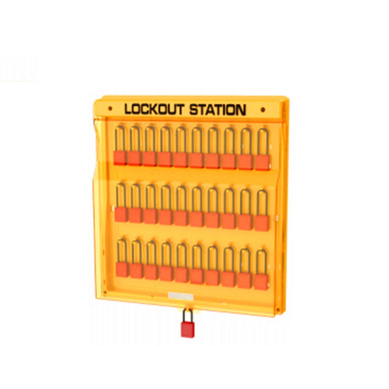 Станция закрытого типа для хранения LOTO замков с прозрачной крышкой. Вмещает 30-60 шт навесных замков. Можно хранить замки как с короткой, так и с длинной дужкой 76 мм. Изготовлена из прочного пластика, закрывается на навесной замок. Станцию без крышки можно заказать под артикулом BD-B202W.